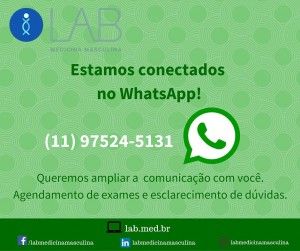 Para nosso pacientes de fora de São Paulo ou Brasil, disponibilizamos os laudos dos testes seminais no mesmo dia da coleta, antes da consulta médica, desta maneira otimizamos, em parceria com o LAB Medicina Masculina, o diagnóstico e conduta dos casos. Em casos de congelamento seminal de urgência, indicamos o contato com o WhatsApp do LAB: (011) 975245131