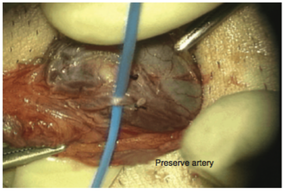Imagem intra-operatória 3: Artéria identificada e isolada por segurança.